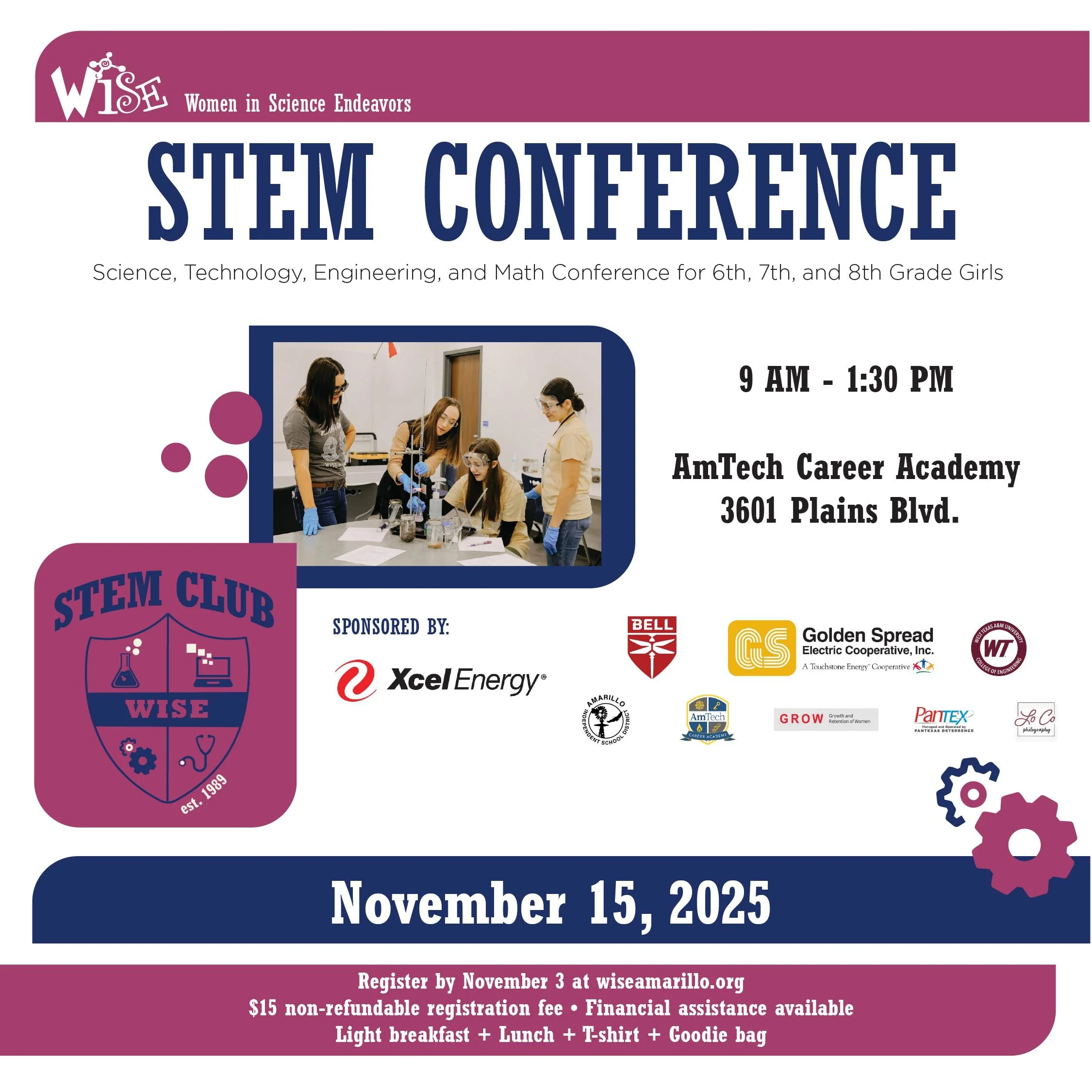 Conference registration is $15 (non-refundable) per participant, which includes a light breakfast, three STEM activities/sessions, lunch, t-shirt, and a souvenir bag. Participants must attend the conference to receive a bag and shirt.